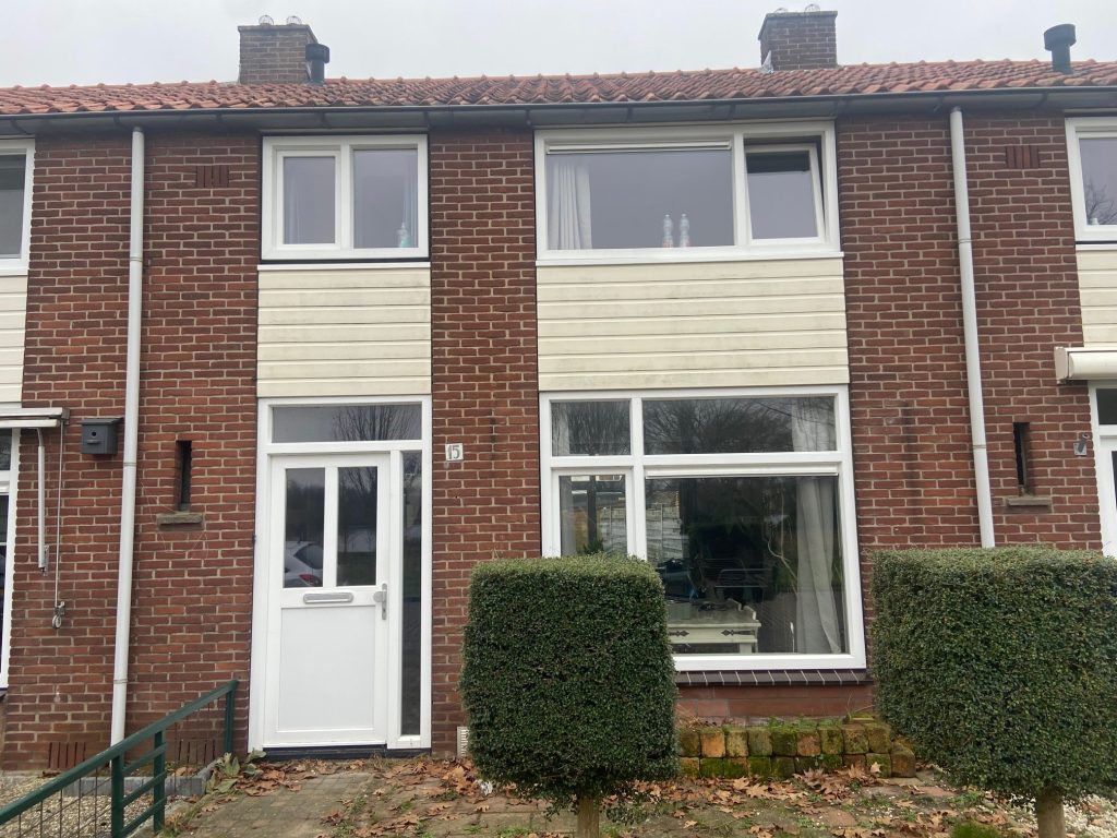Entree, hal, toiletruimte en trapopgang naar de verdieping. Royale woonkamer, separate keuken en een geïsoleerde bijkeuken/berging. Zowel de keuken als de bijkeuken heeft een deur naar de achtertuin. 1e verdieping: overloop, badkamer met wastafel en douche en drie slaapkamers. De woning beschikt over een royale achtertuin gelegen op het westen en een voortuin.